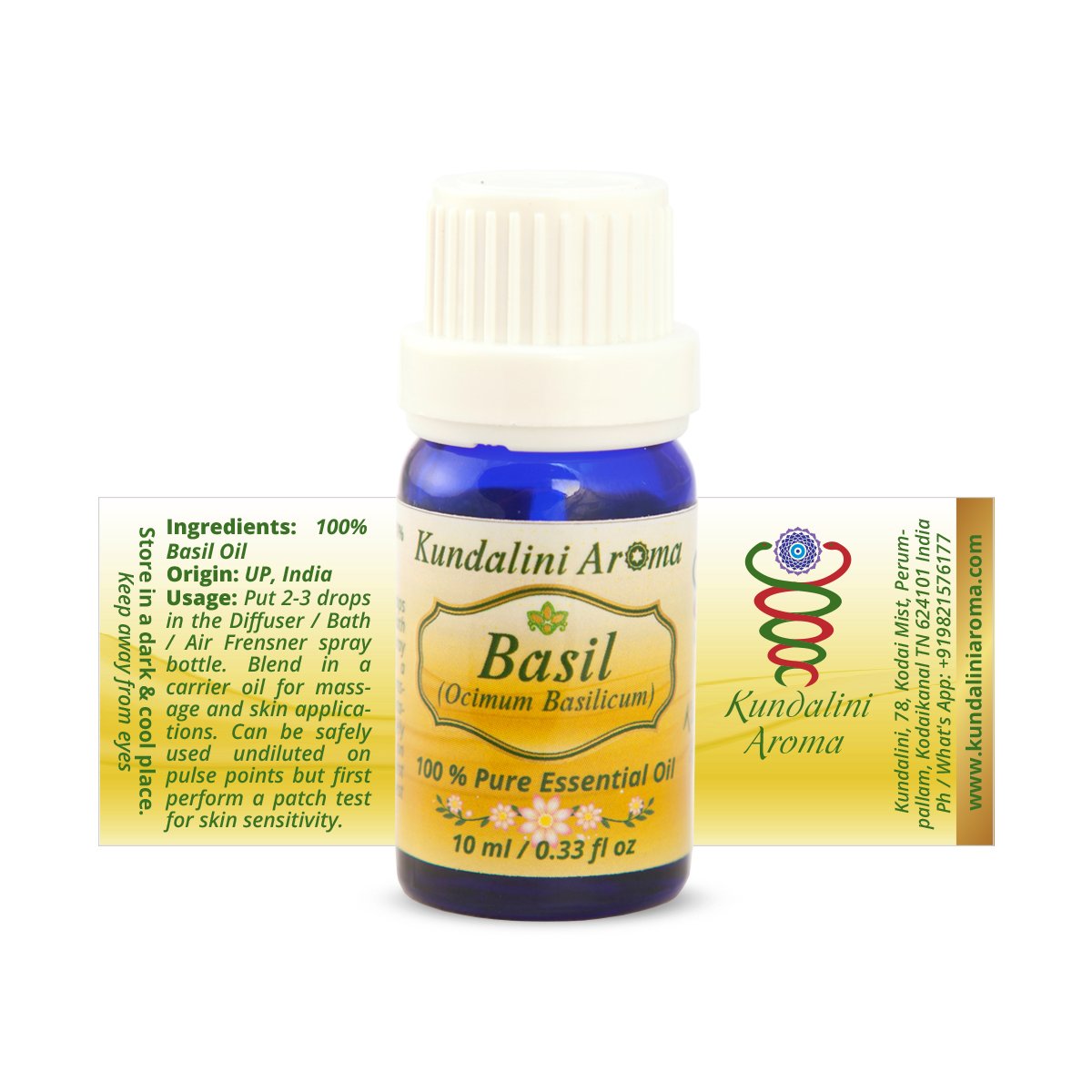 Basil essential oil resonates deeply with the Ajna (Third Eye) Chakra, the center of perception, intuition, and mental clarity. Its clear, herbaceous vibration helps dissolve confusion, heighten concentration, and awaken intuitive insight. It also gently influences the Vishuddha (Throat) Chakra, supporting truthful expression and open communication. Use during meditation, study, or pranayama to clear the mind and balance subtle energy between thought and intuition.