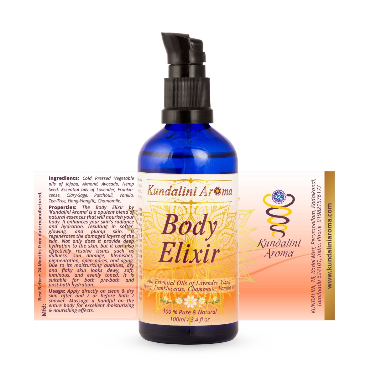 Kundalini Aroma’s Body Elixir is a sensuous, nutrient-rich body oil created to restore your skin’s natural luminosity and resilience. A harmonious blend of cold-pressed carrier oils and therapeutic essential oils, this elixir penetrates deeply to soften, nourish, and rejuvenate; leaving your skin supple, hydrated, and visibly revitalised.