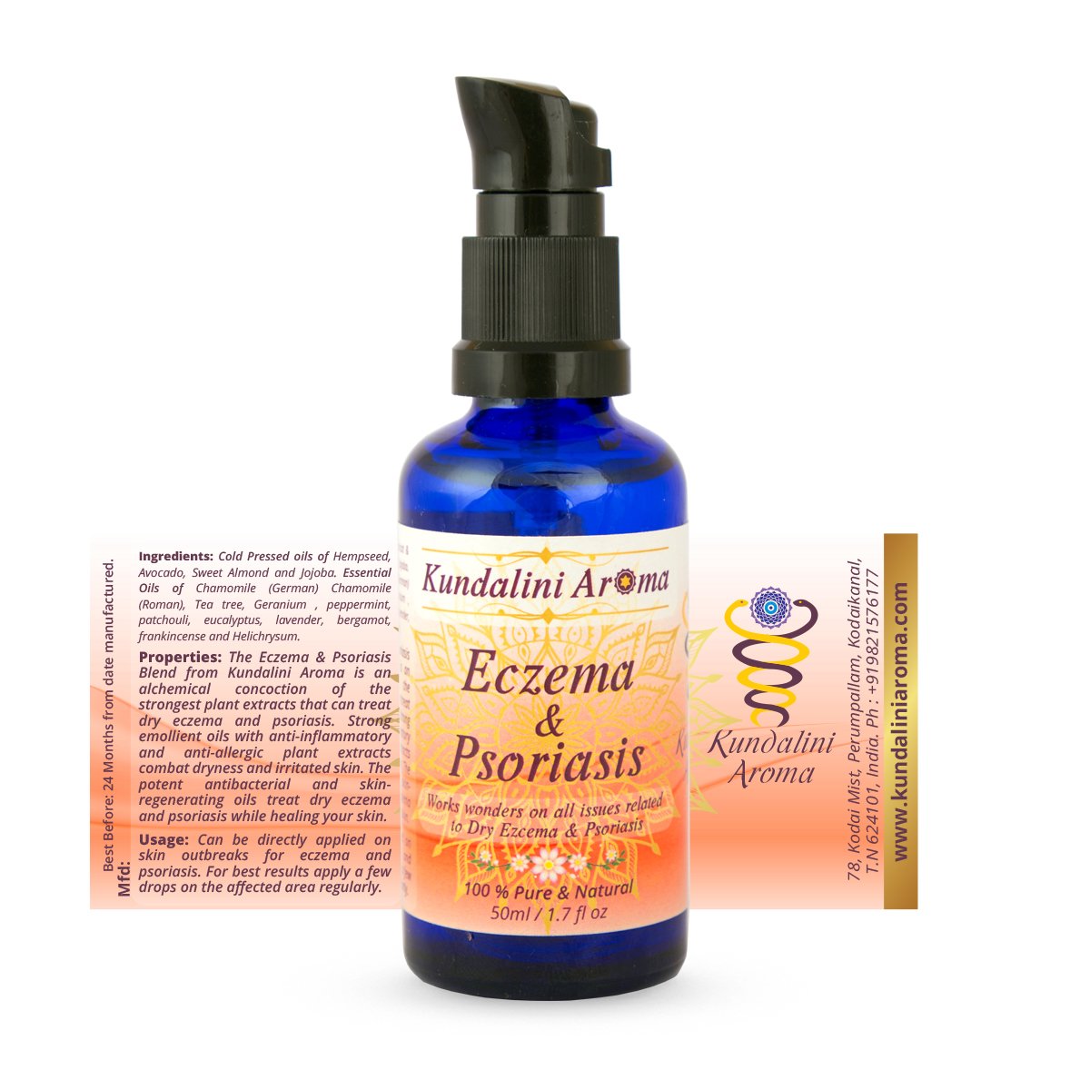 Kundalini Aroma’s Eczema & Psoriasis Blend is a deeply nourishing botanical treatment created specifically for dry eczema and dry psoriasis conditions. It addresses the root of chronic dryness, flaking, cracking, and irritation by replenishing lost lipids, calming inflammation, and restoring the skin’s natural protective barrier.